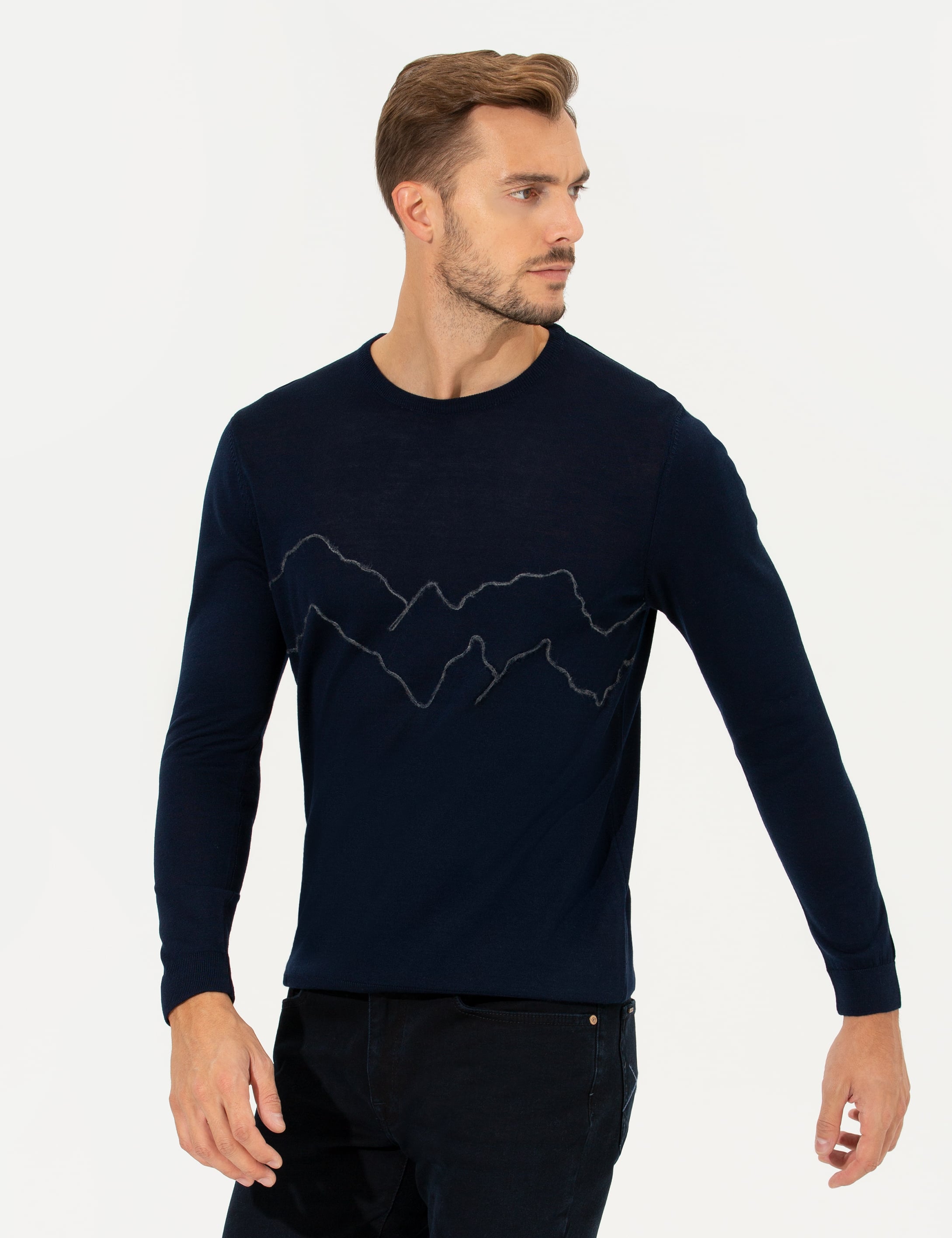 - Lacivert Regular Fit Bisiklet Yaka Yün Karışımlı Triko Kazak