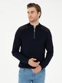 - Lacivert Regular Fit Fermuarlı Dik Yaka Triko Kazak