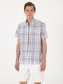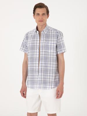 Lacivert Regular Fit Kısa Kollu Ekose Gömlek