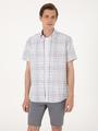 - Lacivert Regular Fit Kısa Kollu Ekose Gömlek