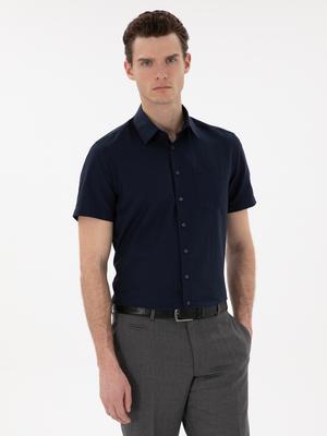 Lacivert Basic Regular Fit Kısa Kollu Cepli Gömlek