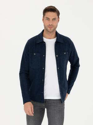 Lacivert Klasik Yaka Çift Cepli Regular Fit Örme Gömlek Ceket