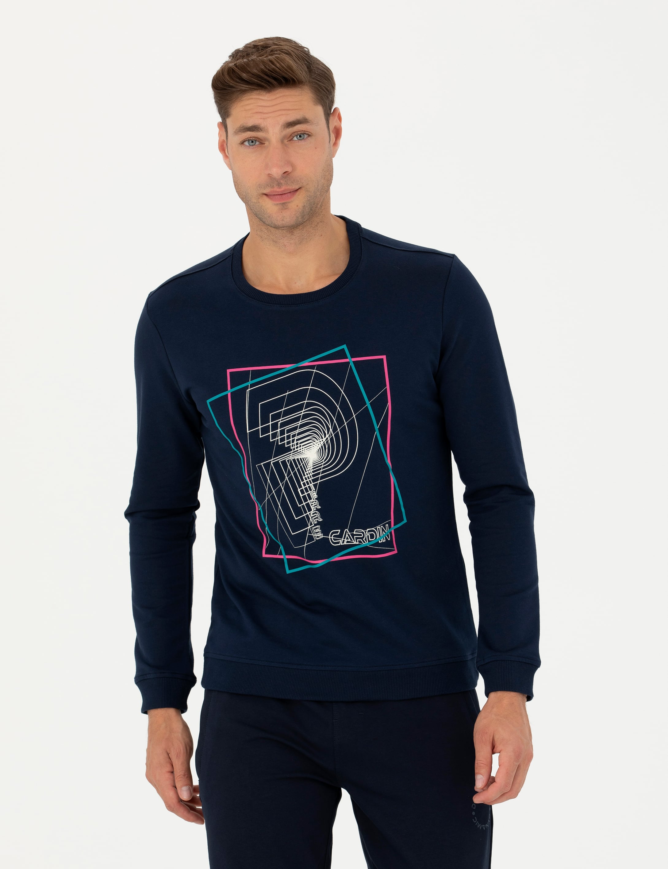 - Lacivert 2 İplik Regular Fit %100 Pamuk Bisiklet Yaka Sweatshirt