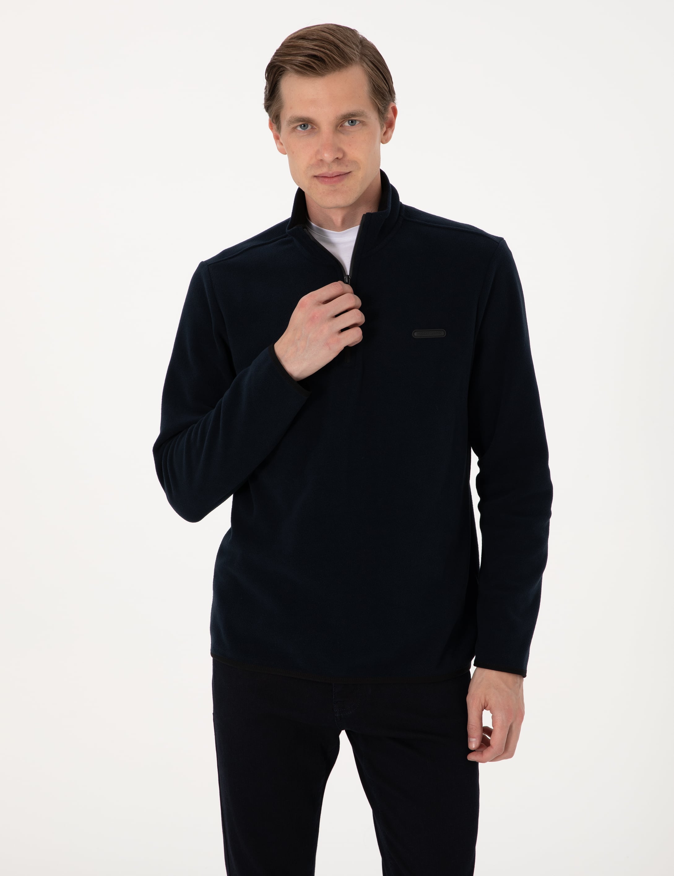 Lacivert Regular Fit Yarım Fermuarlı Polar Sweatshirt