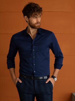 Lacivert Regular Fit Uzun Kollu Basic Gömlek