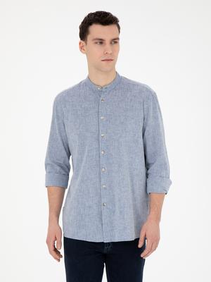 Lacivert Keten Karışımlı Regular Fit Uzun Kollu Gömlek