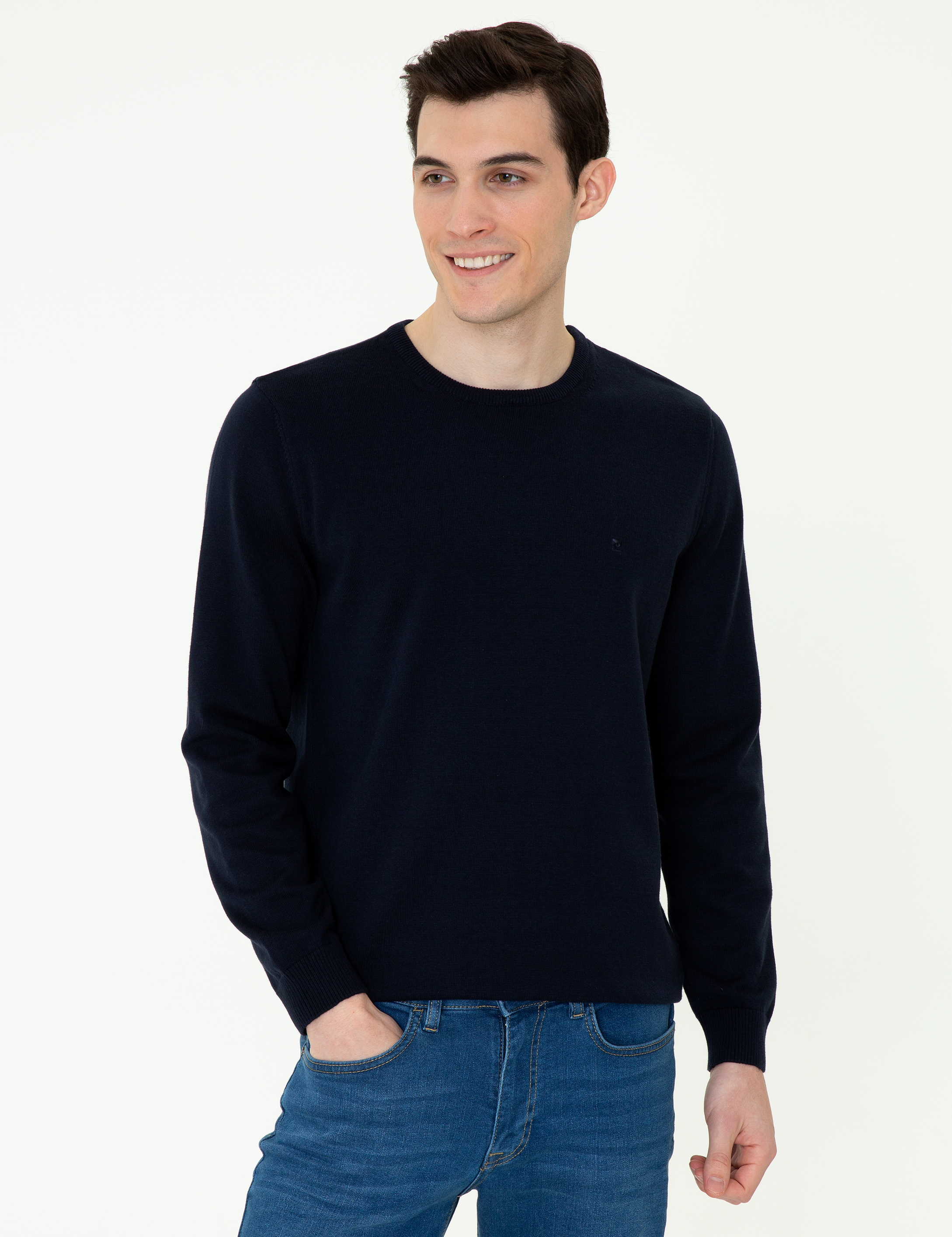 Lacivert Slim Fit Bisiklet Yaka Basic Triko Kazak