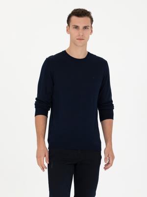 Lacivert Slim Fit Bisiklet Yaka Yün Karışımlı Basic Triko Kazak
