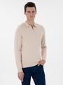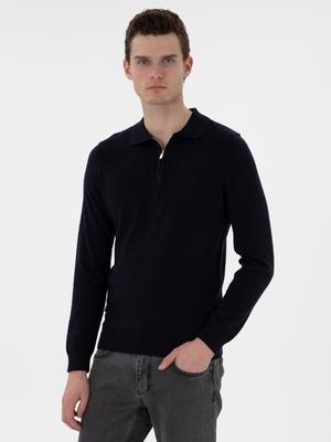 Lacivert Slim Fit Fermuarlı Polo Yaka Yün Karışımlı Basic Triko Kazak