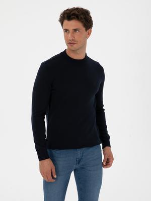 Lacivert Slim Fit Çeyrek Yaka Basic Triko Kazak