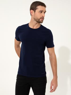 - Lacivert Slim Fit Bisiklet Yaka Basic Tişört
