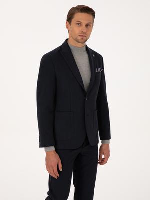 Lacivert Slim Fit Flanel Dokulu Ceket