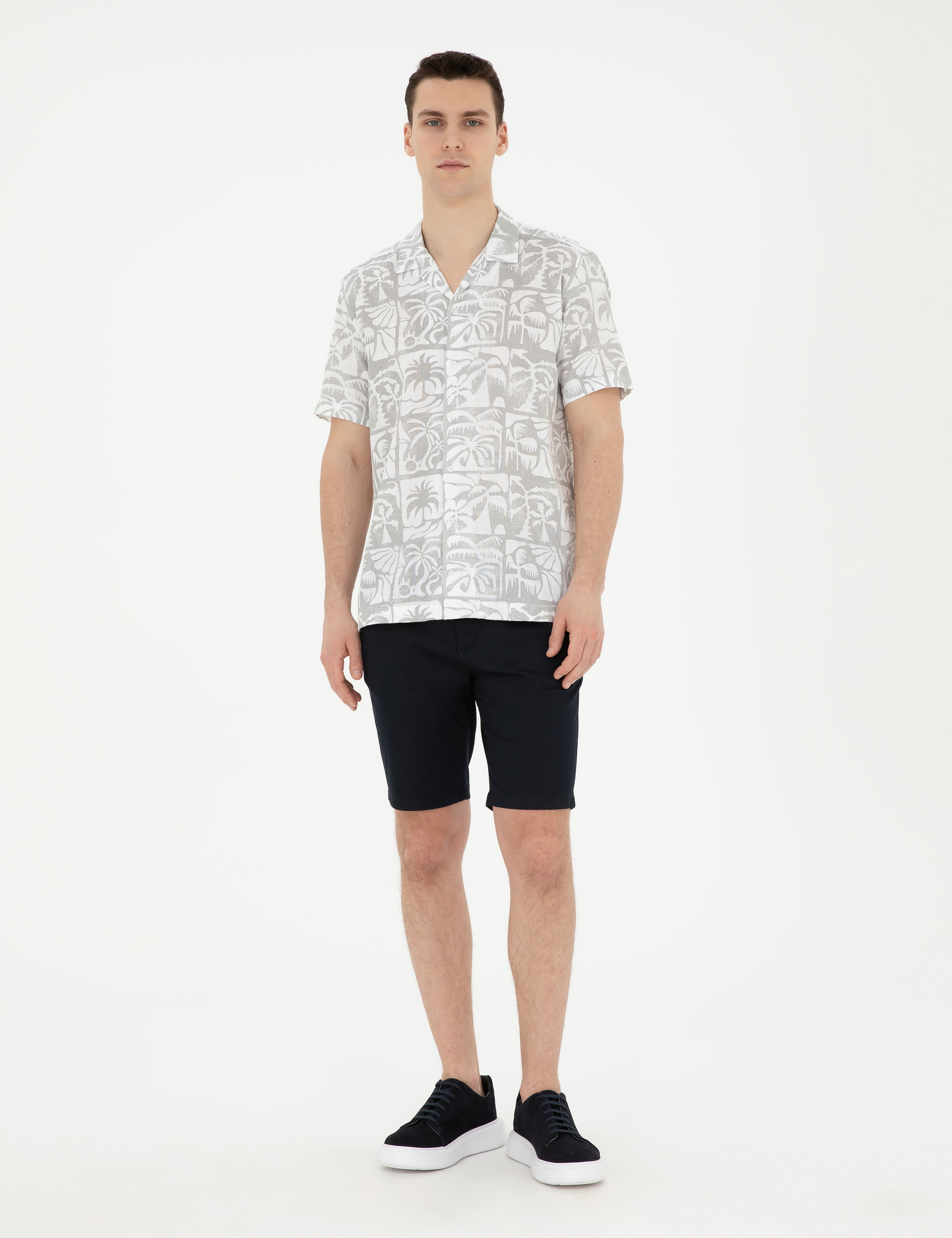 - Lacivert Slim Fit Dokuma Şort
