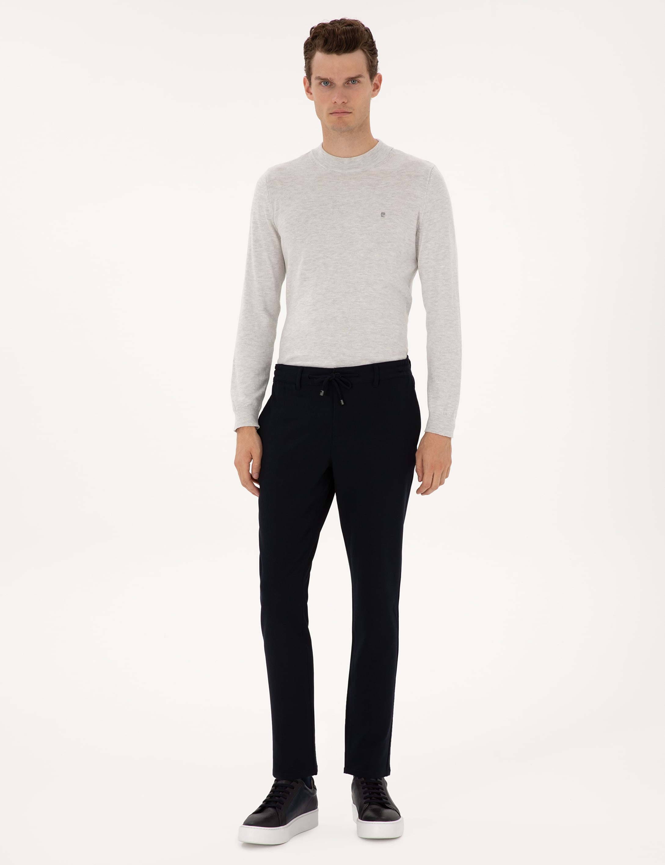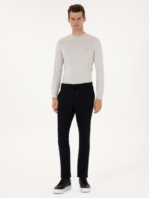 Lacivert Slim Fit Beli Lastikli Kordonlu Kanvas Pantolon