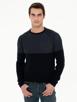 - Lacivert Slim Fit Bisiklet Yaka Yün Karışımlı Triko Kazak