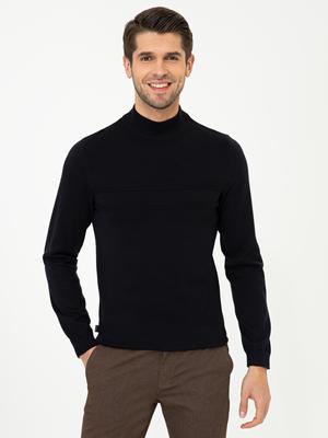 - Lacivert Slim Fit Yarım Balıkçı Yaka Triko Kazak