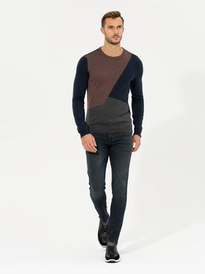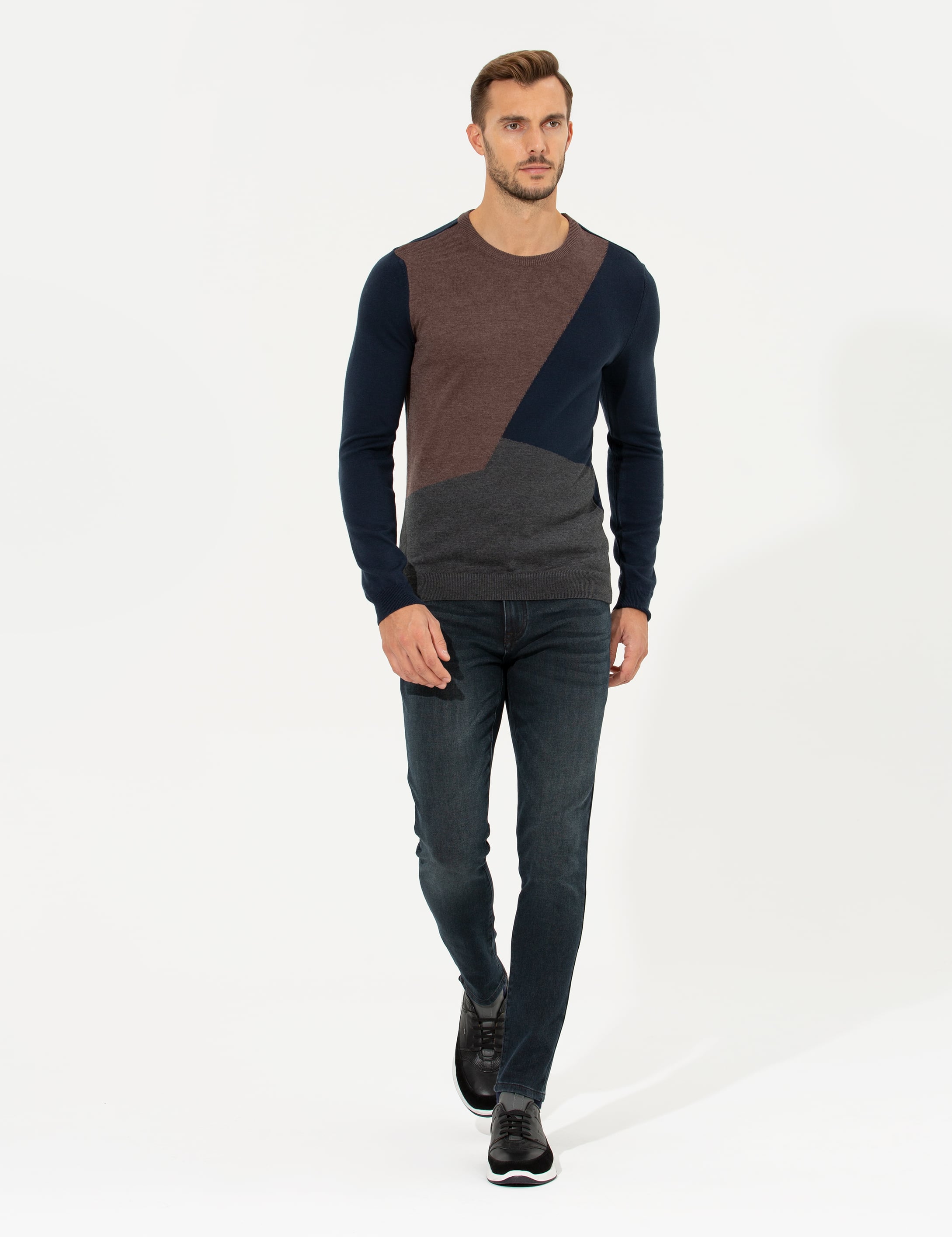 Lacivert Slim Fit Bisiklet Yaka Triko Kazak