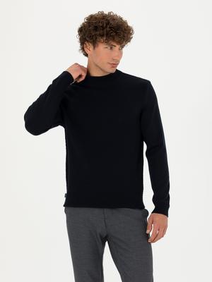- Lacivert Slim Fit Yarım Balıkçı Yaka Triko Kazak