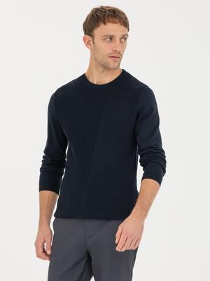 - Lacivert Slim Fit Bisiklet Yaka Triko Kazak