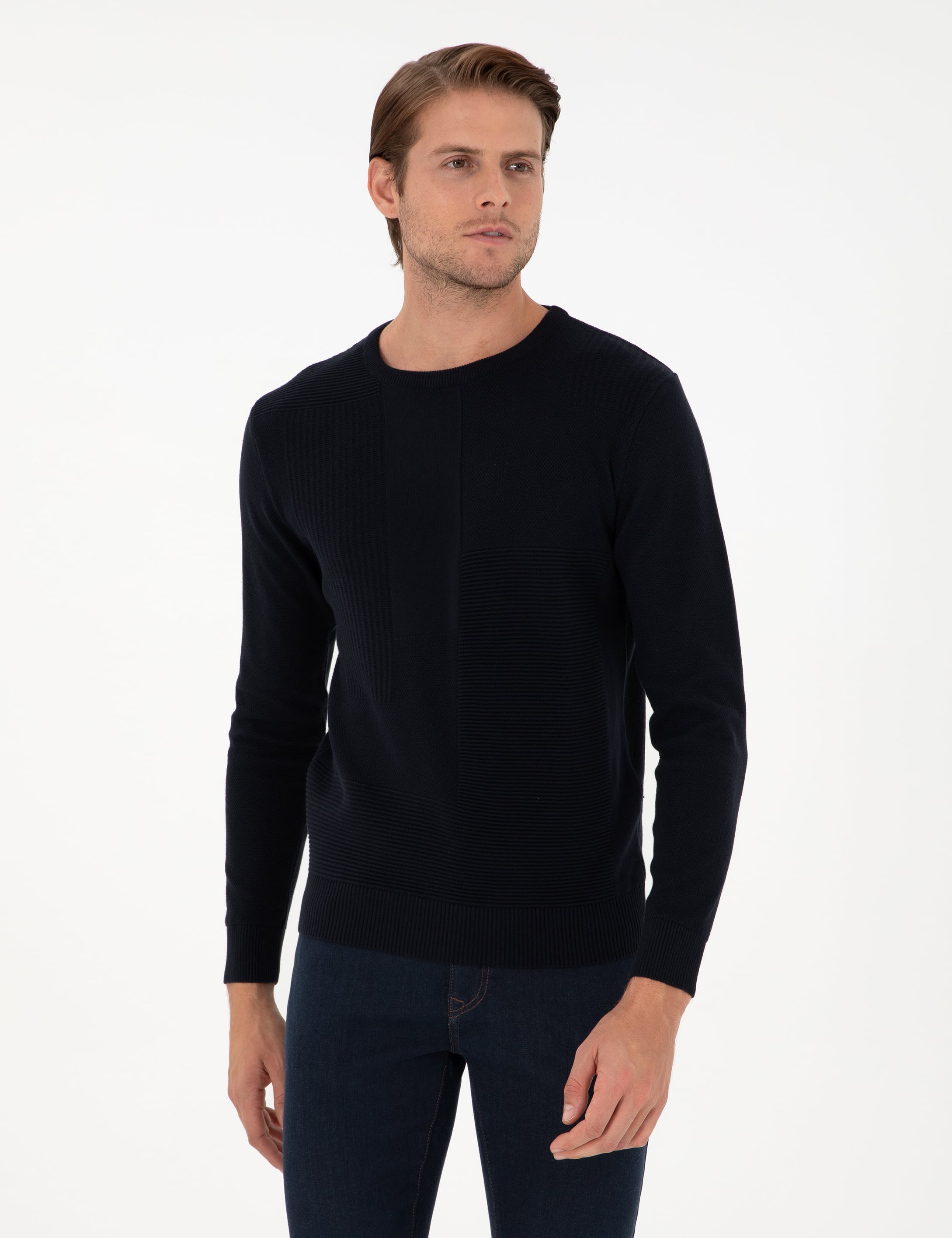 - Lacivert Slim Fit Bisiklet Yaka Yün Karışımlı Triko Kazak