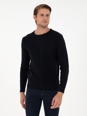 Lacivert Slim Fit Bisiklet Yaka Yün Karışımlı Triko Kazak