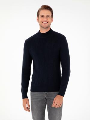 - Lacivert Slim Fit Yarım Balıkçı Yaka Yün Karışımlı Triko Kazak