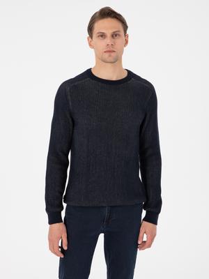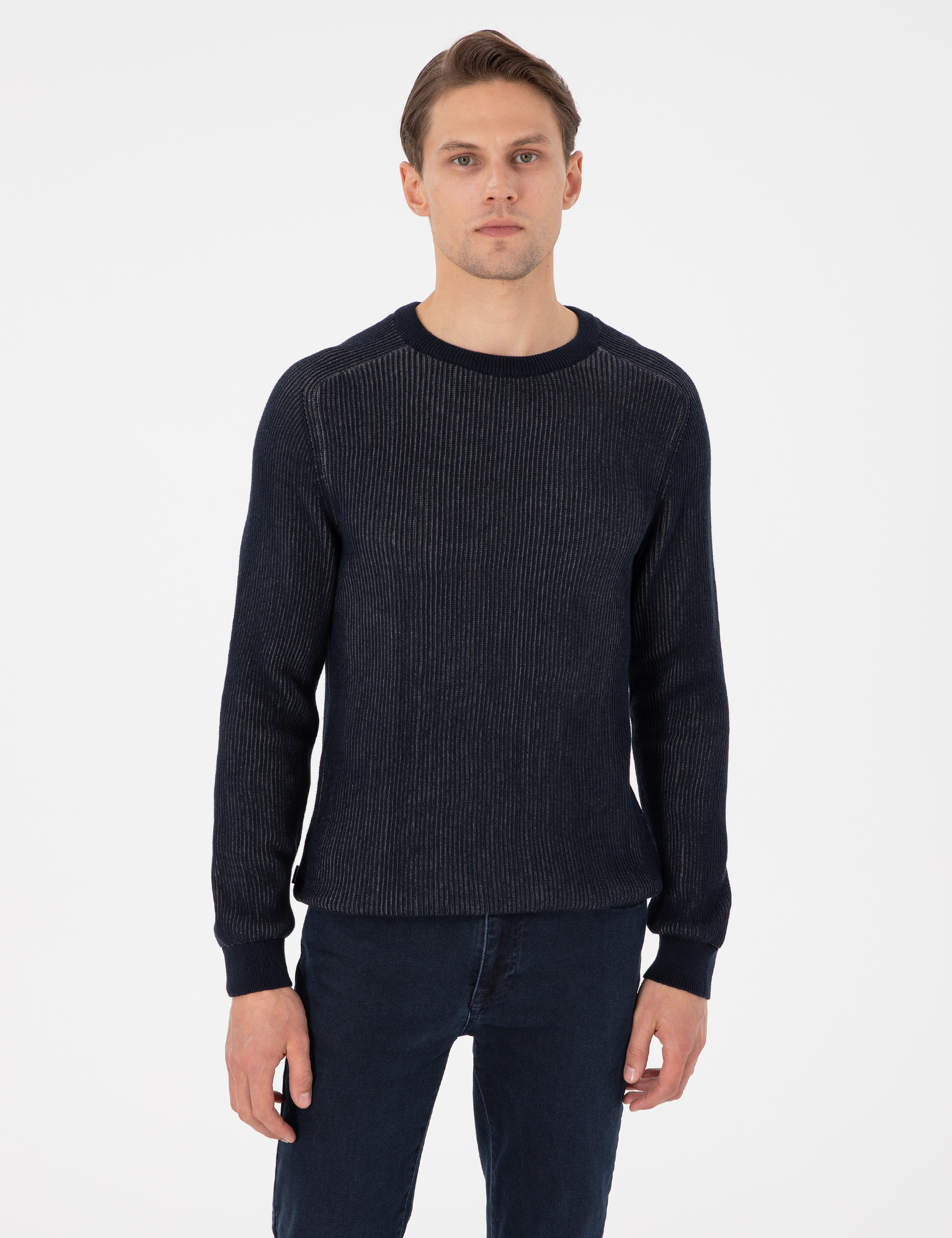 Lacivert Slim Fit Bisiklet Yaka Triko Kazak