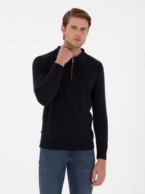 - Lacivert Slim Fit Fermuarlı Polo Yaka Triko Kazak