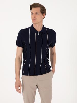 - Lacivert Slim Fit Polo Yaka Fermuarlı Triko Tişört
