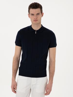 - Lacivert Slim Fit Fermuarlı Polo Yaka Triko Tişört