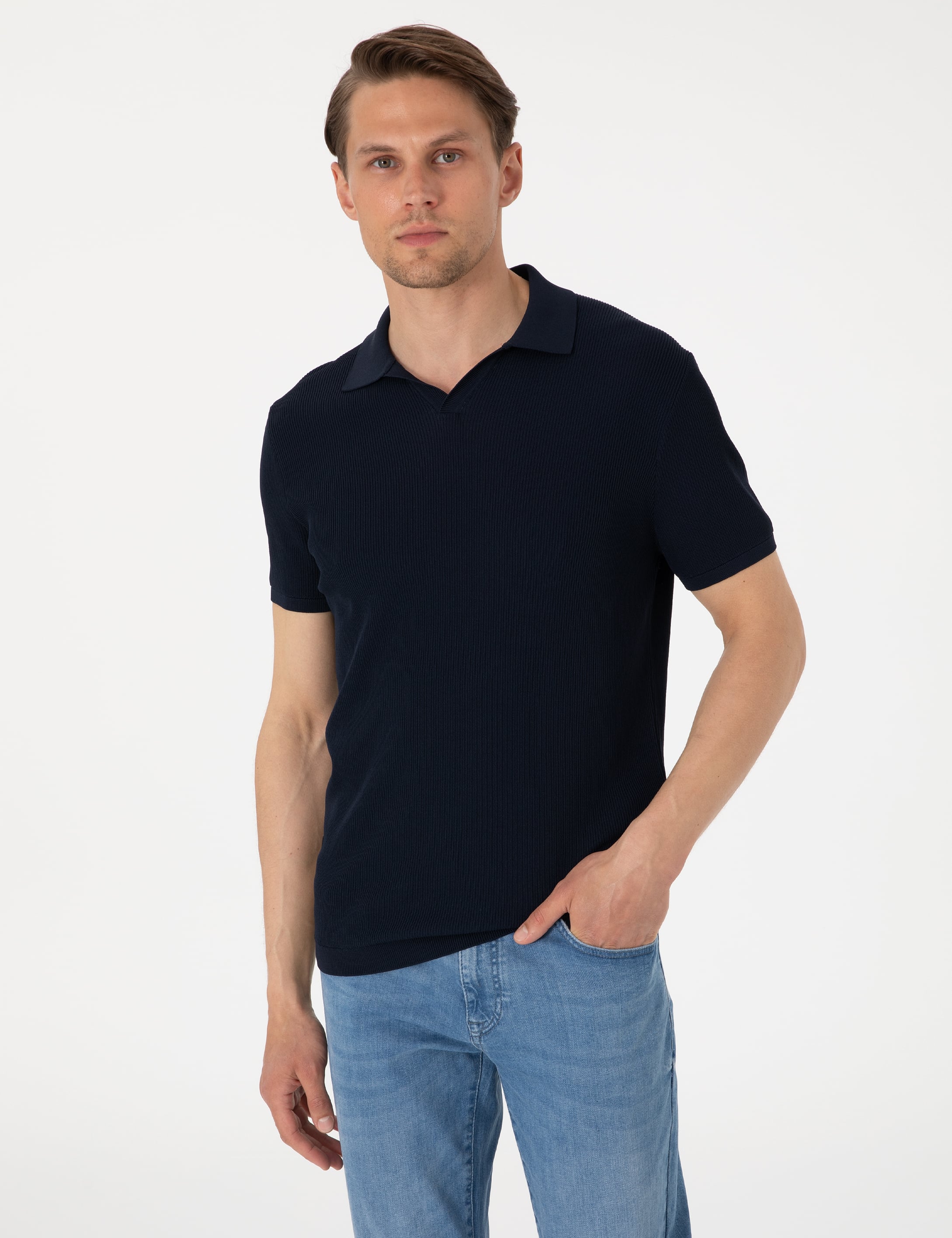 - Lacivert Slim Fit Polo Yaka Triko Tişört