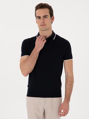 Lacivert Slim Fit Düğmeli Polo Yaka Triko Tişört
