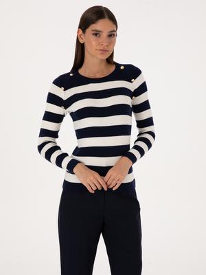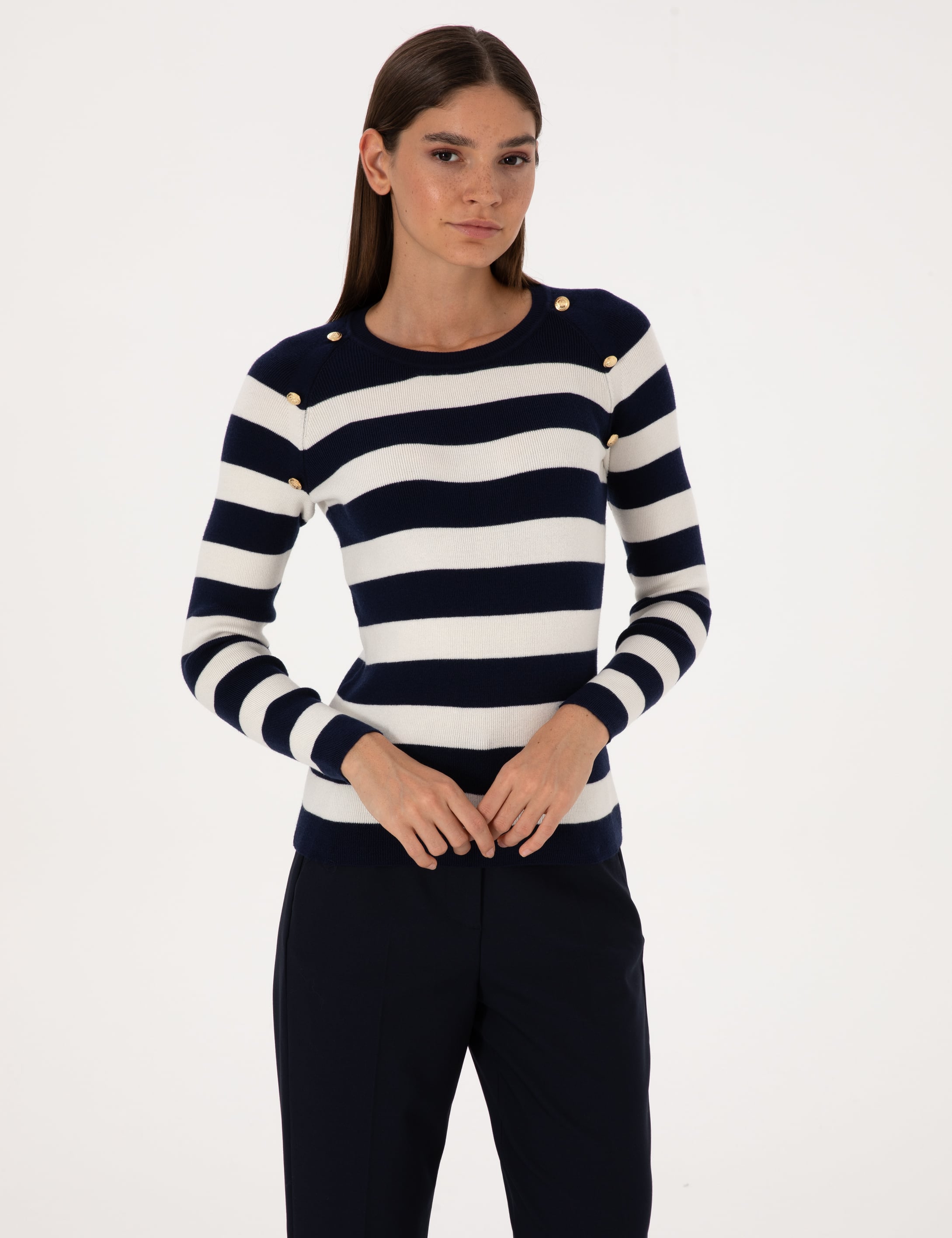 - Lacivert Slim Fit Düğme Detaylı Kazak