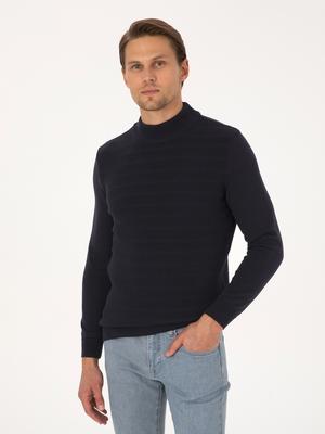 - Lacivert Slim Fit Yarım Balıkçı Yaka Triko Kazak