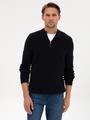 - Lacivert Slim Fit Dik Yaka Fermuarlı Triko Kazak