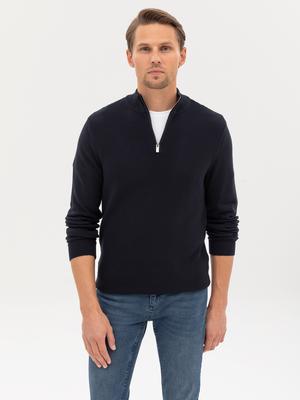 - Lacivert Slim Fit Dik Yaka Fermuarlı Triko Kazak