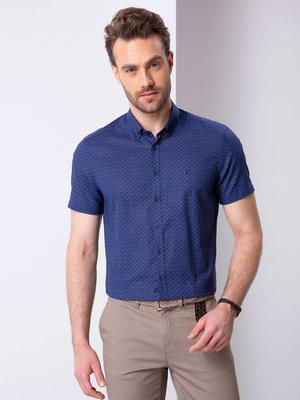 Lacivert Slim Fit Kısa Kollu Gömlek