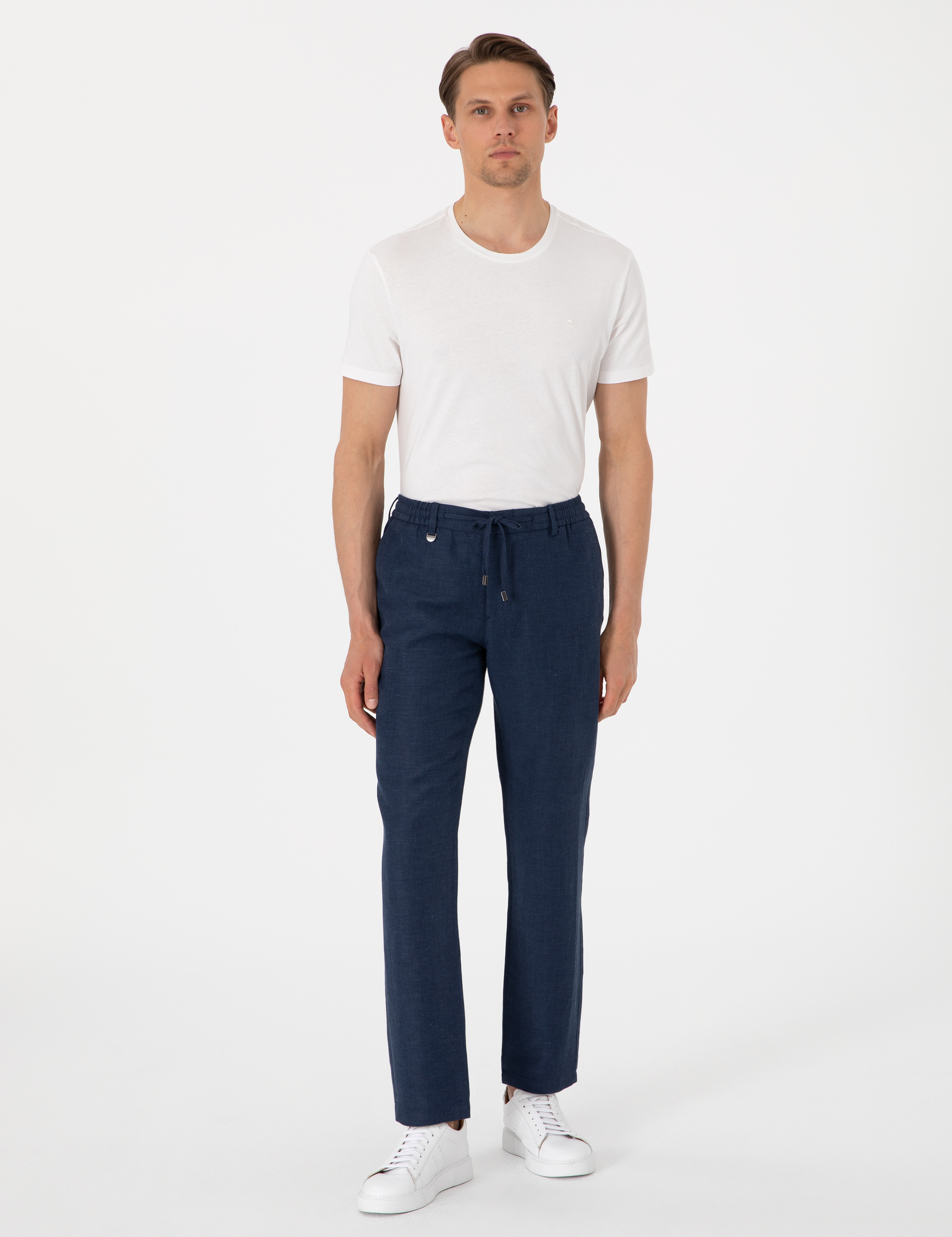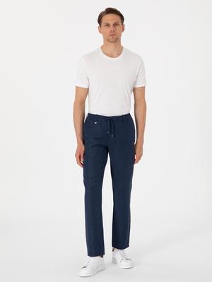 - Lacivert Slim Fit Keten Karışımlı Pantolon