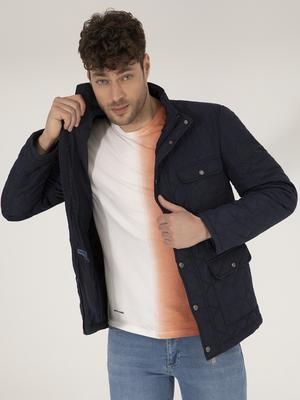 Lacivert Kapitoneli Mevsimlik Mont