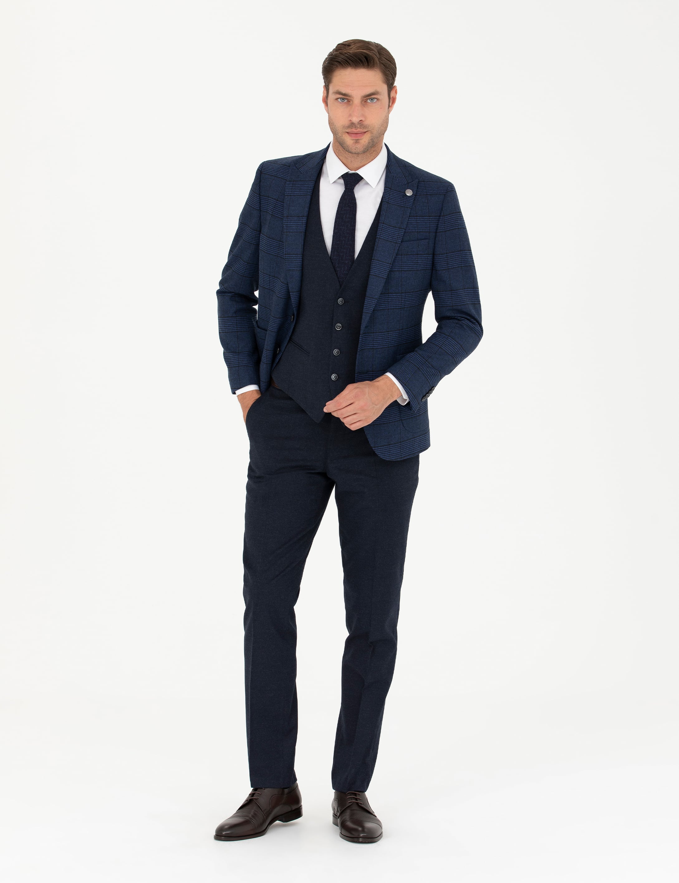 - Lacivert Yelekli Ekose Takım Elbise