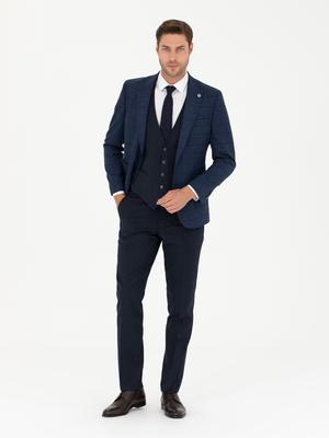 Lacivert Yelekli Ekose Takım Elbise