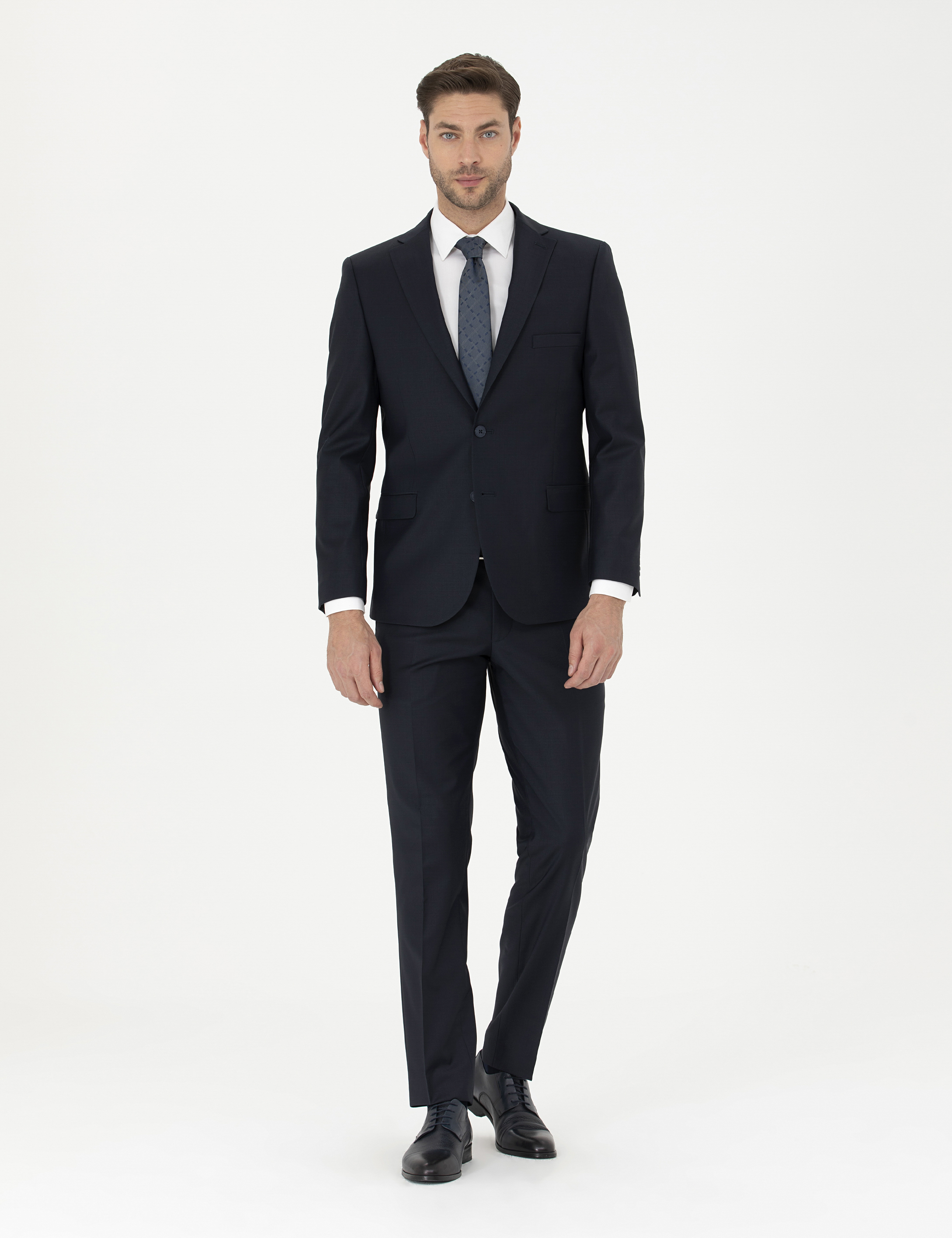 - Lacivert Slim Fit Yün Karışımlı Takım Elbise