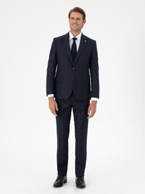 - Lacivert Slim Fit Ekose Yün Takım Elbise