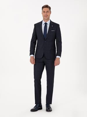 Lacivert Slim Fit Yün Karışımlı Ekose Takım Elbise
