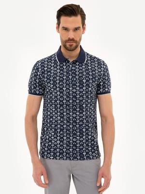 - Lacivert Slim Fit Baskılı Polo Yaka Tişört