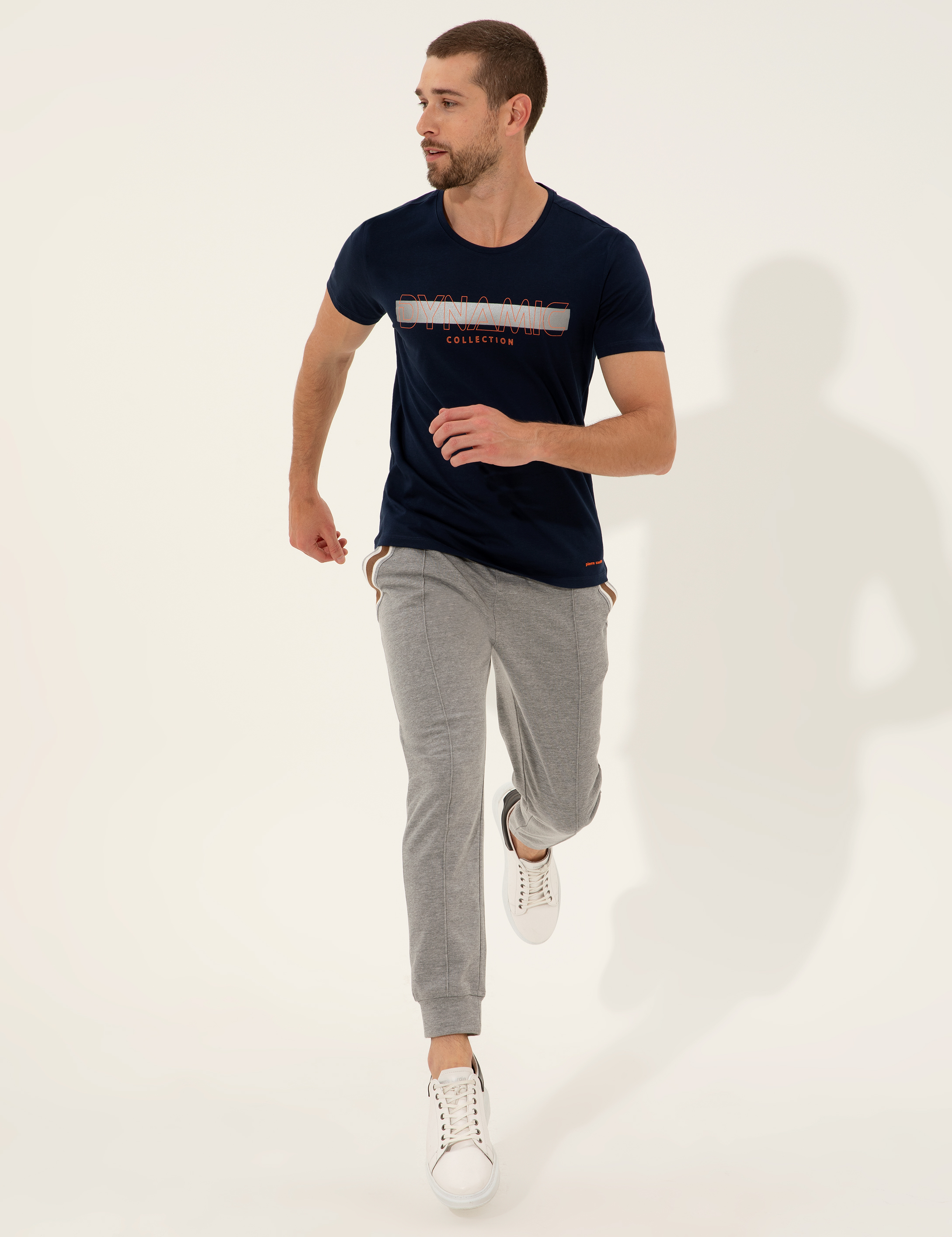 - Lacivert Slim Fit Baskılı Bisiklet Yaka Tişört