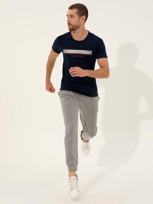 Lacivert Slim Fit Baskılı Bisiklet Yaka Tişört