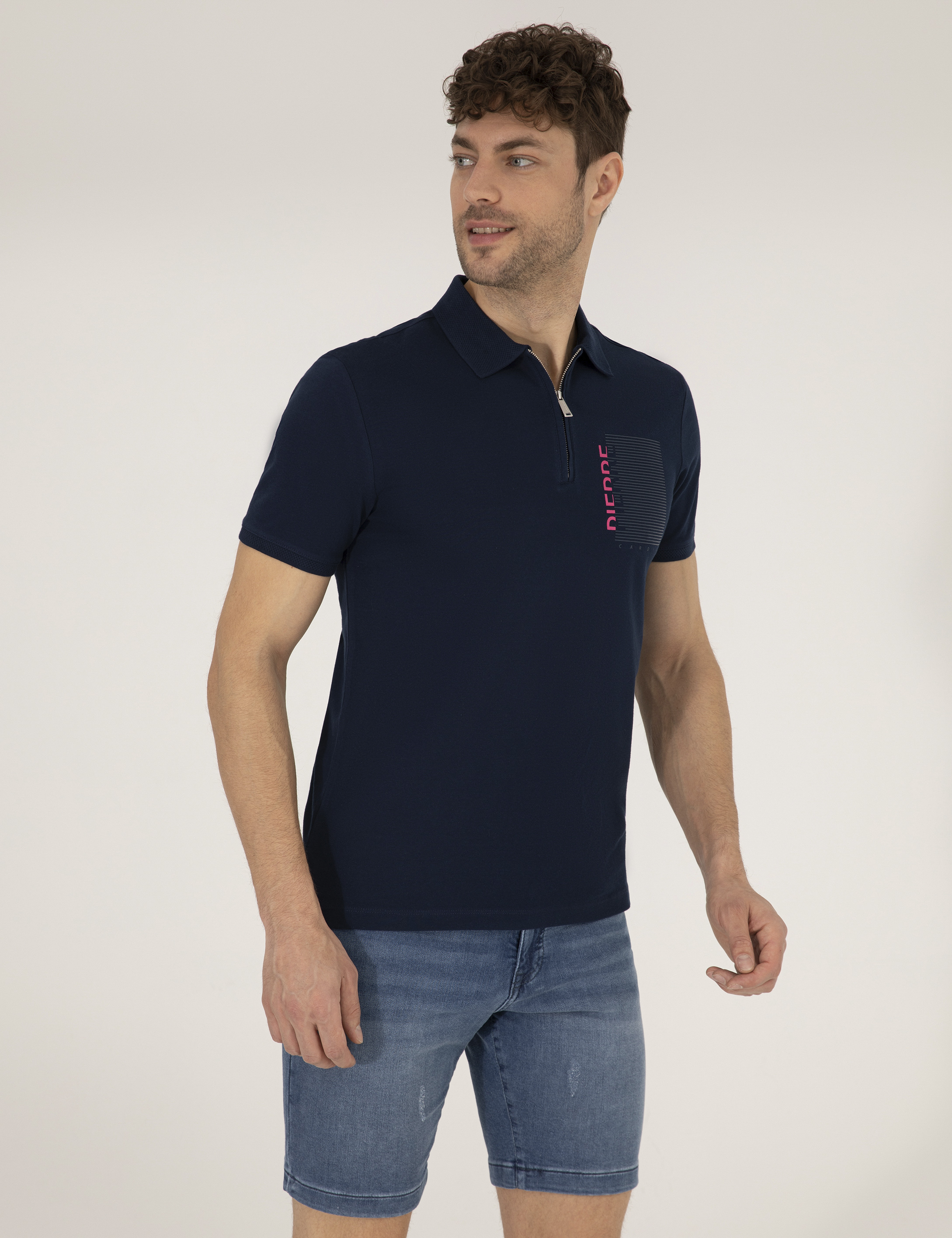 - Lacivert Slim Fit Fermuarlı Polo Yaka Tişört