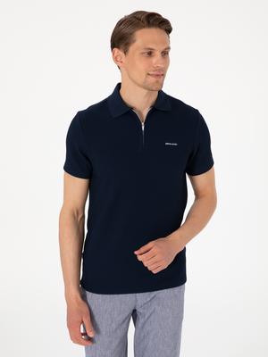 - Lacivert Slim Fit Örme Dokulu Polo Yaka Tişört