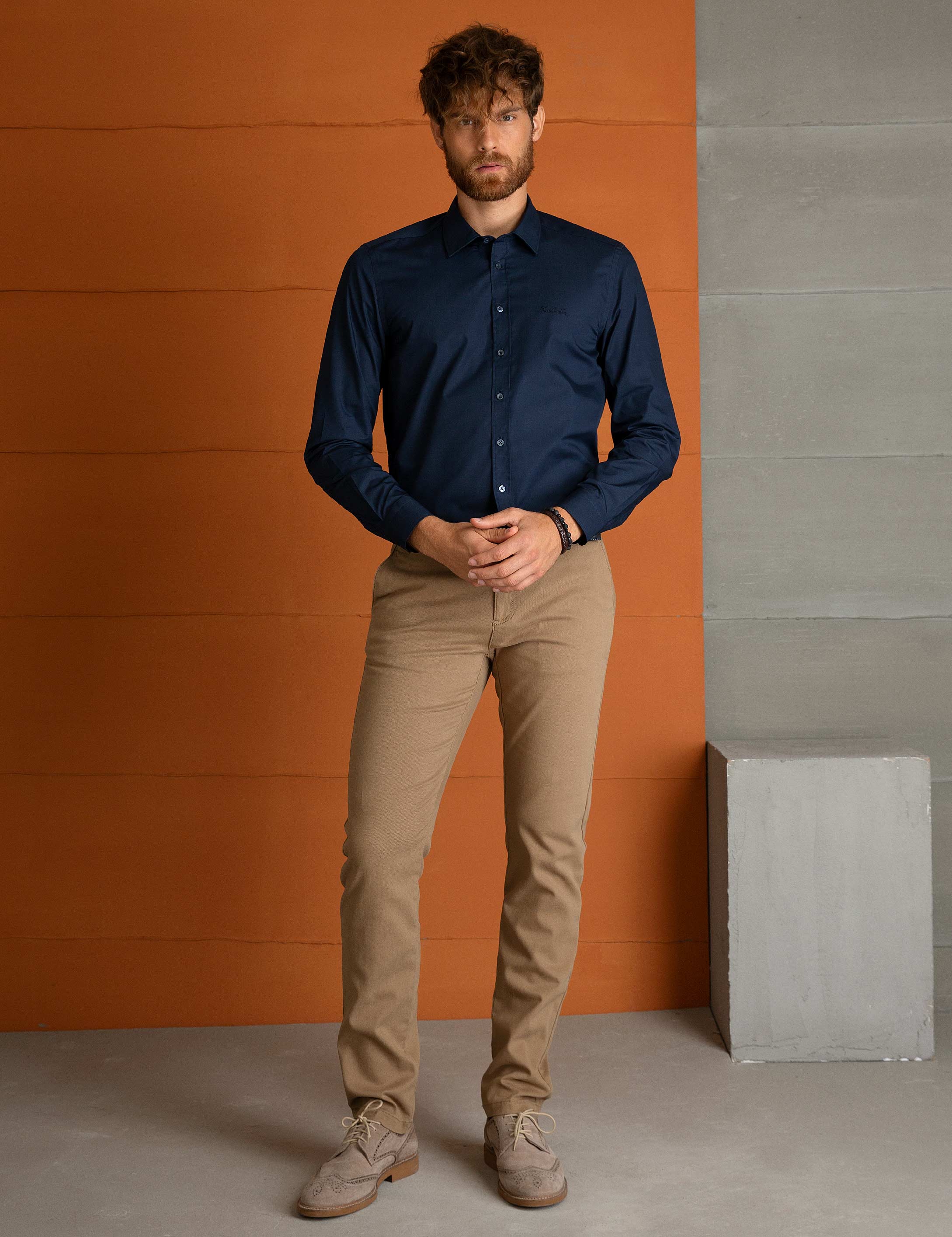 Lacivert Slim Fit Uzun Kollu Basic Gömlek